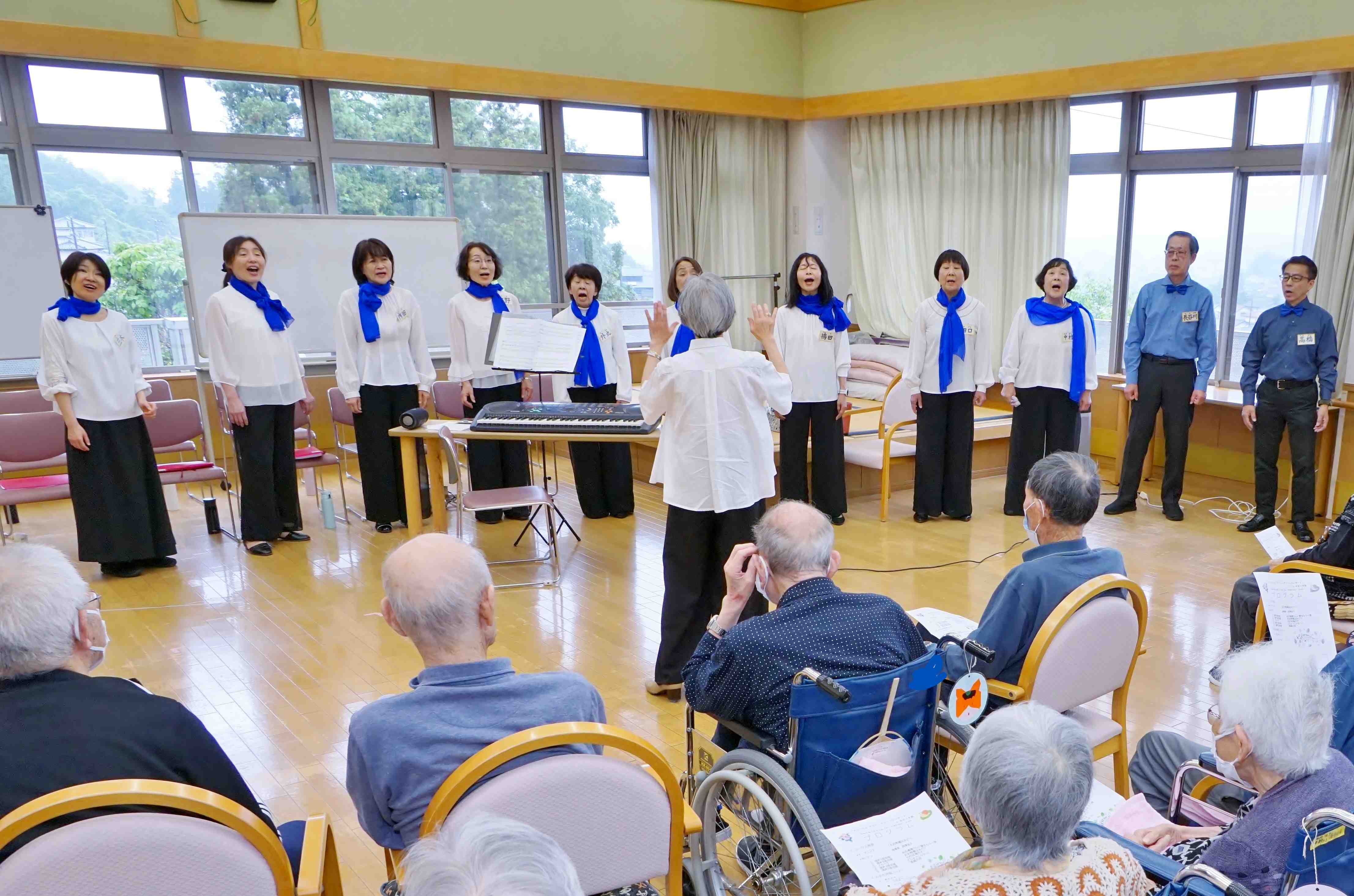 令和7年5月31日の午後にオオルリの会によるグリーングリーンコンサートがせせらぎ苑で開催されました。あの素晴らしい愛をもう一度や荒城の月などの3部合唱では素晴らしいハーモニーとなっておりました。どじょっこふなっこでは春夏秋冬のアレンジで歌を聴かせてくれました。われは海の子はアカペラで披露して頂き歌声が部屋中に響き渡っておりました。肩たたきやパタカラ唱、カスタネット合奏も利用者様も参加され楽しまれておりました。利用者様の中には「素晴らしかった。」「普段合唱を聴けないので良かった。また聴きたい。」など感想を話されておりました。